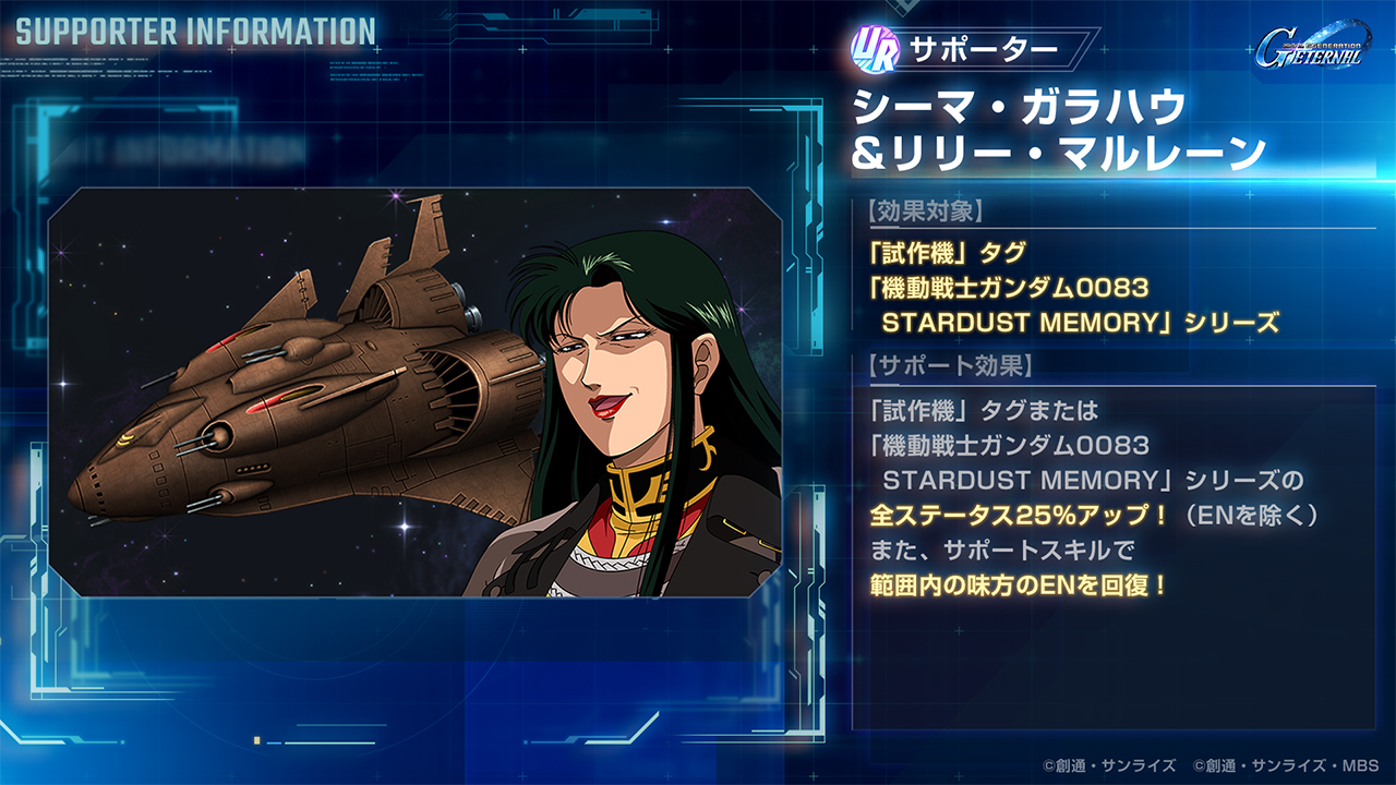 また、期間限定UR「ガンダム試作2号機(EX)」/UR「アナベル・ガトー」が再登場します。その他、UR「ノイエ・ジール(EX)」/UR「アナベル・ガトー」やサポーターのUR 「シーマ・ガラハウ&リリー・マルレーン」などが続々登場!