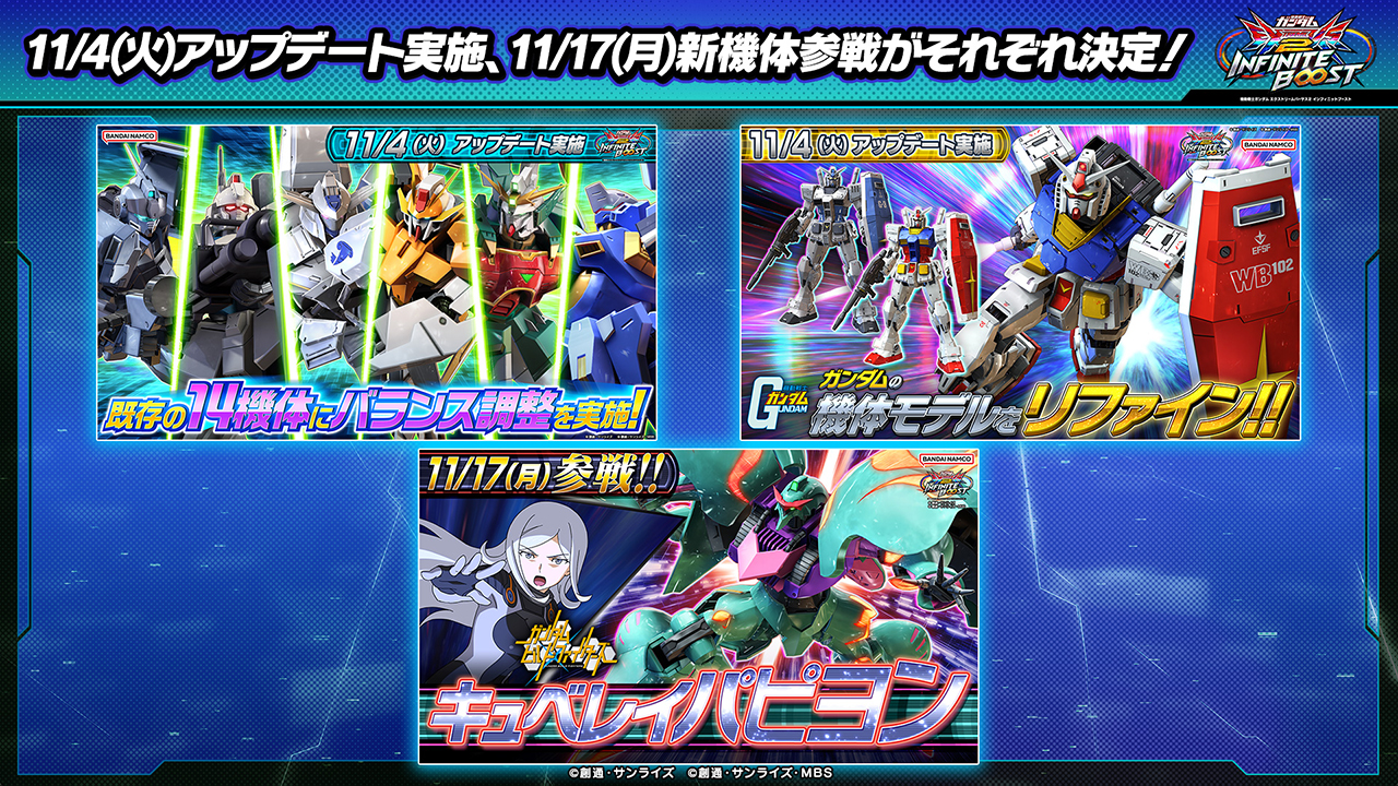 11/4(火)アップデートにてバランス調整などを実施!さらに、11/17(月)新機体『キュベレイパピヨン』が参戦!