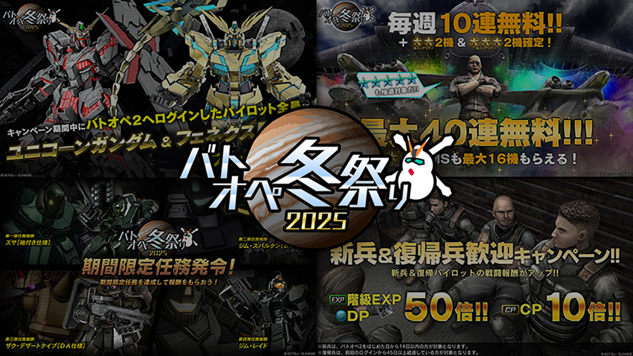 上記キャンペーンを含め、「バトオペ冬祭り2025」のキャンペーン内容に関する詳細は、追って公式サイトや公式Xにて順次公開予定となりますので、ぜひ楽しみにお待ちください。