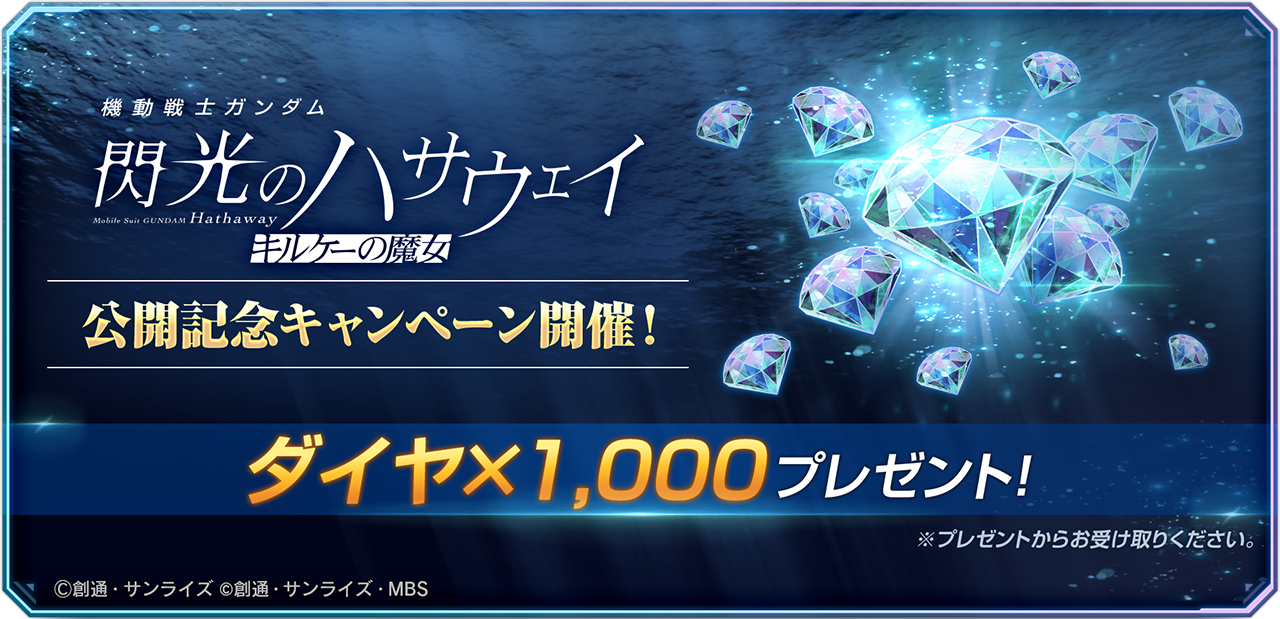 『機動戦士ガンダム 閃光のハサウェイ キルケーの魔女』公開記念!ダイヤ1,000個を全員へプレゼント!