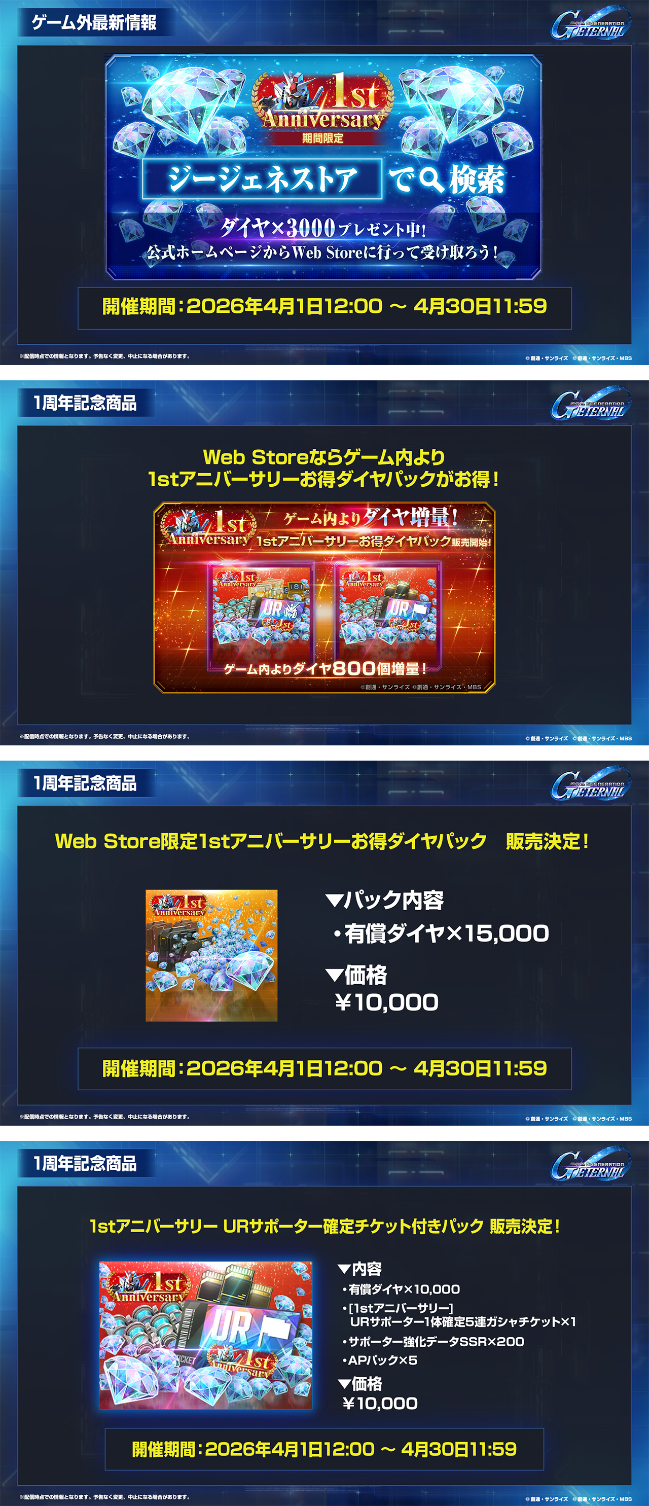1周年はWebStoreがお得!1stアニバーサリー無料ダイヤや、「1stアニバーサリーお得ダイヤパック」、「1stアニバーサリーURサポーター確定チケット付きパック」が販売決定!