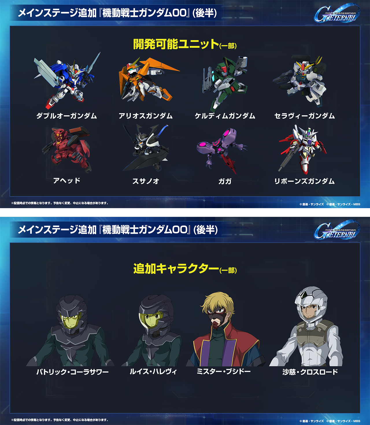 「ロードマップ発表生配信」で発表された1周年情報公開!メインステージ『機動戦士ガンダム00』(後半)と『新機動戦記ガンダムW Endless Waltz』が追加決定!