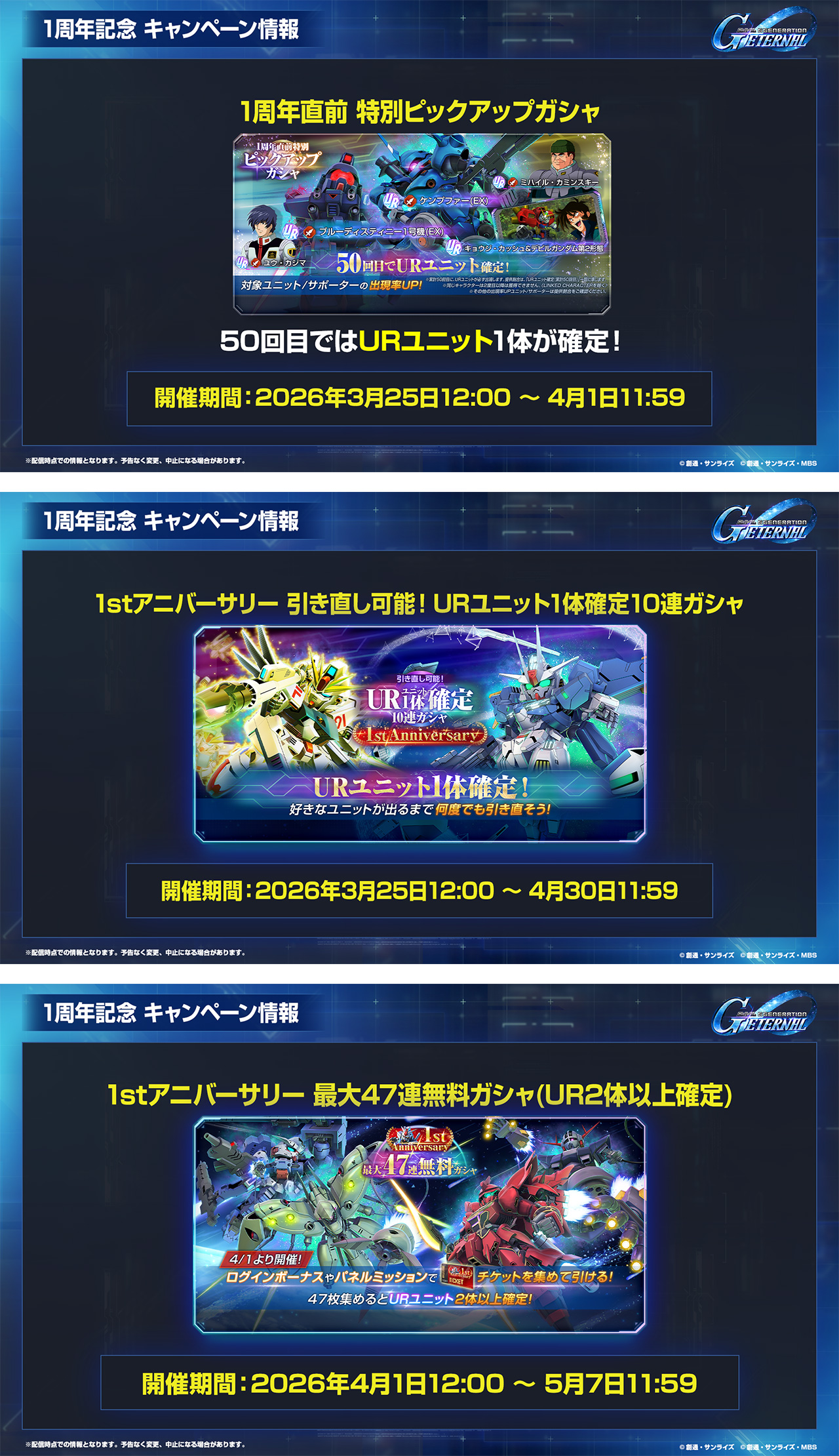 • 1stアニバーサリー 最大47連無料ガシャ(UR2体以上確定)