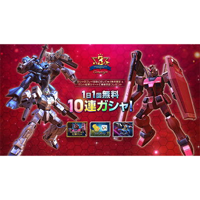 ついに3周年!「1日1回無料10連ガシャ」など豪華キャンペーン開催! 新たなコスト10機体の「Hi-νガン…